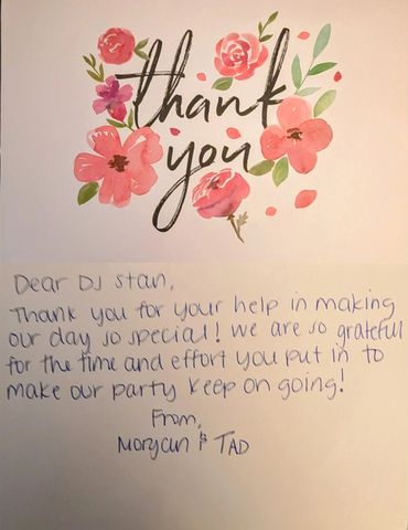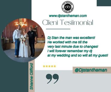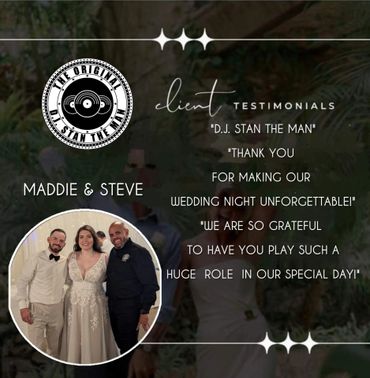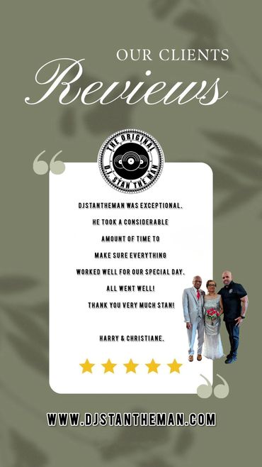 Don't just take our word for it - check out what our clients have to say about DJ Stan The Man Professional DJ Services's DJ services. Our testimonials speak for themselves, and we're confident that you'll love our work too.